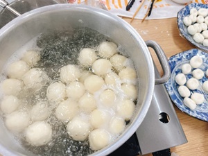 少し経つとお団子がぷかぷか上に浮いてくるので